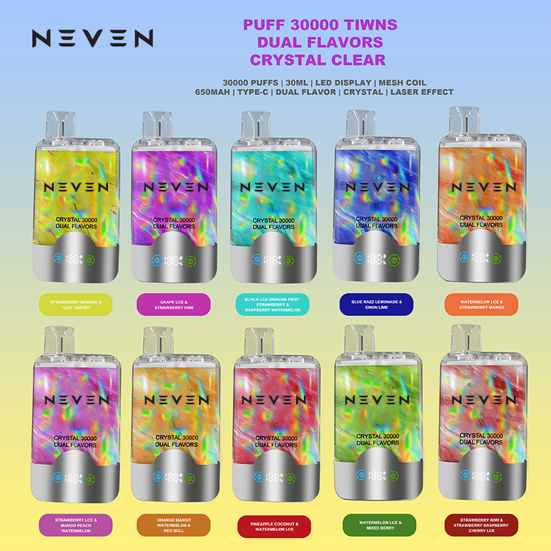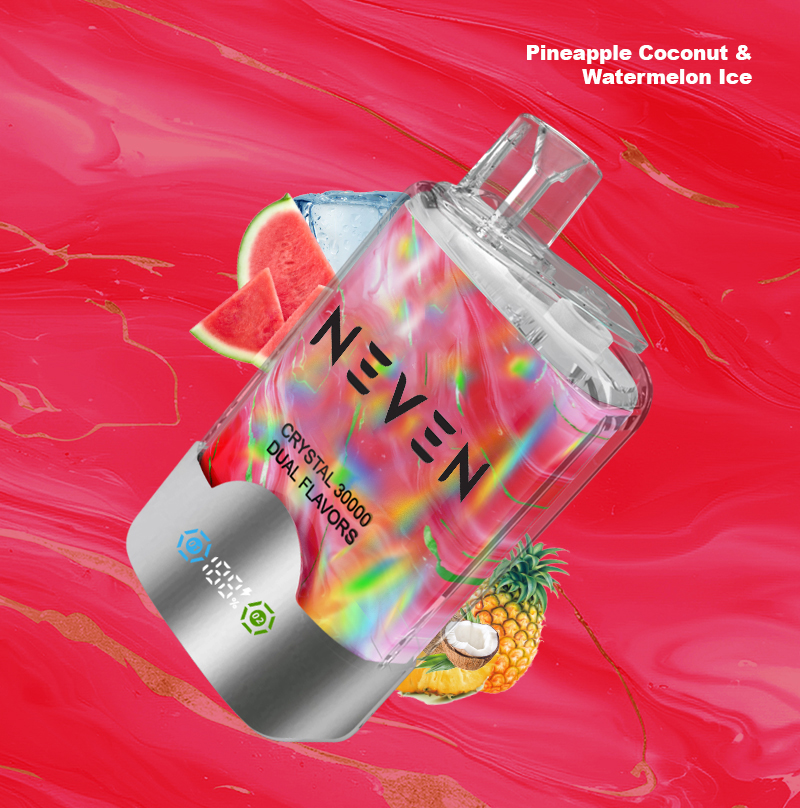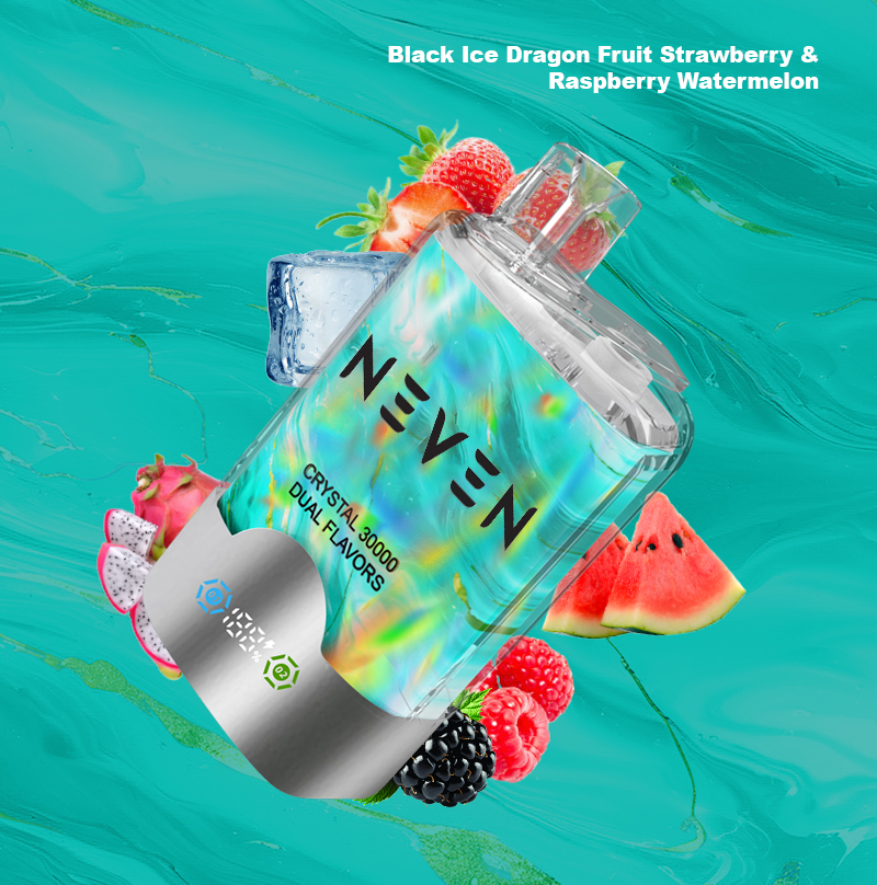 | Flavor | NEVEN DUAL FLAVOR 30K PUFF, Black Ice Dragon Fruit Strawberry & Raspberry Watermelon, Blue Razz Lemonade & Lemon Lime, Grape Ice & Strawberry Kiwi, Orange Mango Watermelon & Red Bull, Pineapple Coconut & Watermelon Ice, Strawberry Banana & Fizzy Cherry, Strawberry Ice & Mango Peach Watermelon, Strawberry Kiwi & Strawberry Raspberry Cherry Ice, Watermelon Ice & Mixed Berry, Watermelon Ice & Strawberry Mango |